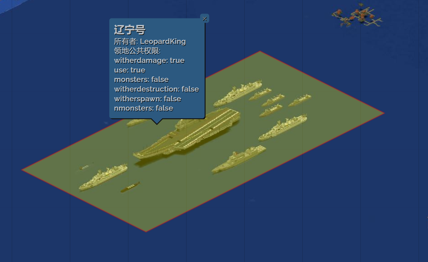 通过地图,可以查看整个服务器中所有玩家的领地分布情况。