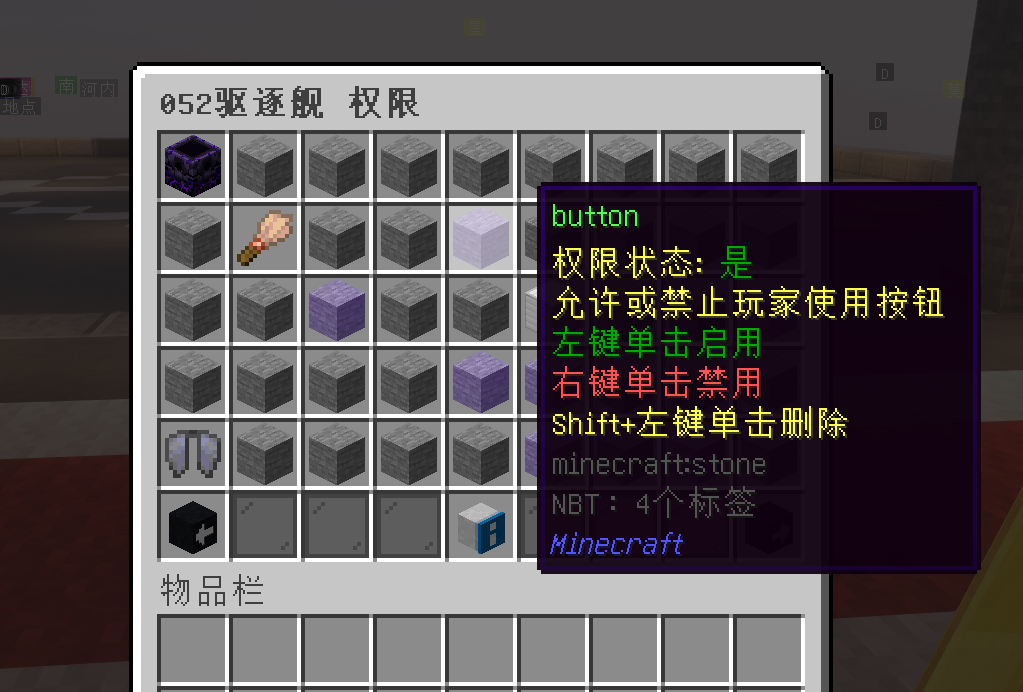 • 权限包括:build(建造)、destroy(破坏)、use(使用物品)等。