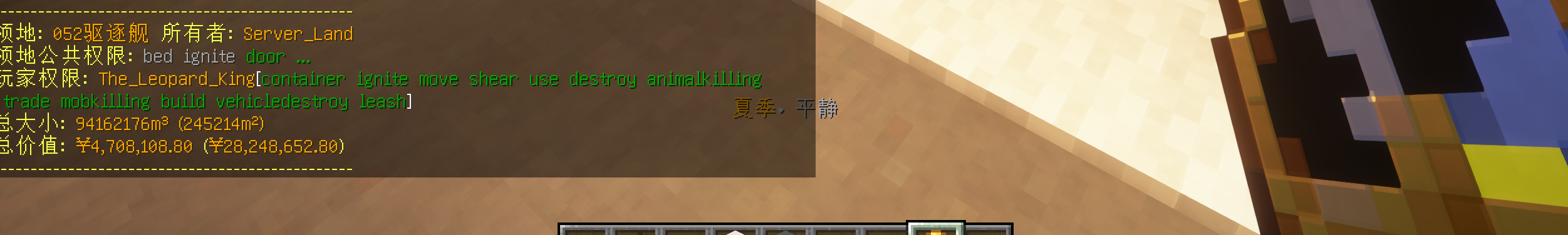 • 手持右键地面可以查询此地是否有领地存在,如果存在,就显示信息
