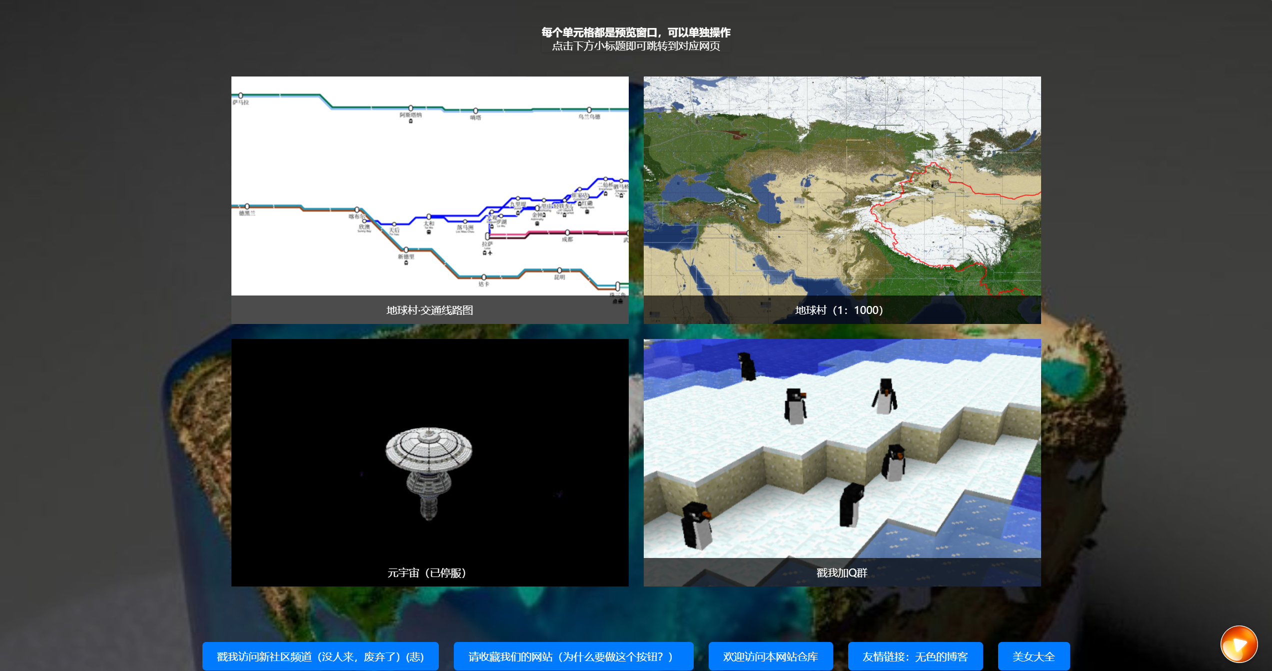 网页结构与地球村主地图相同,但是黑色调,功能相同。默认视图是“联邦空间站”——元宇宙小游戏服务器的主城,右侧可以切换不同的小游戏地图