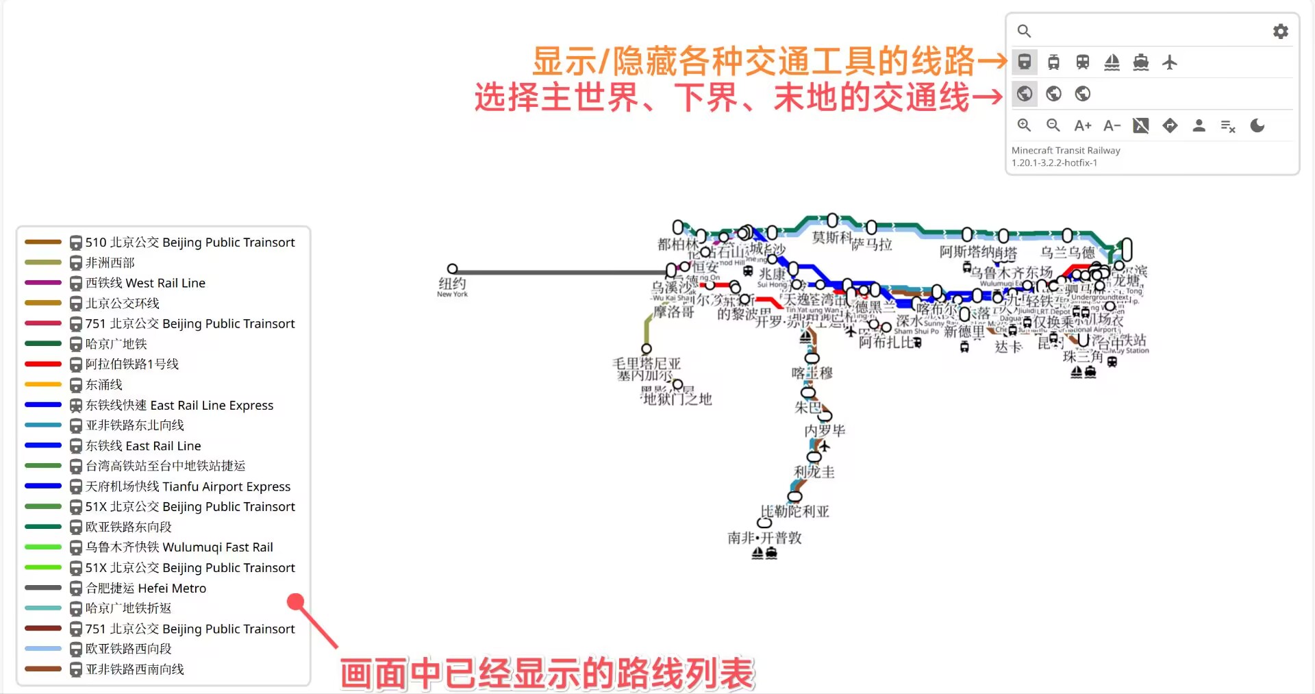 本服务器提供了一个集成化的地图系统,帮助玩家查看各大地图的实时数据,包括交通线路、世界地形以及小游戏服务器的网页地图。所有这些地图都整合在一个主页 地图集,玩家可以通过该页面轻松浏览并进入不同的地图。以下是详细的地图功能与界面说明。