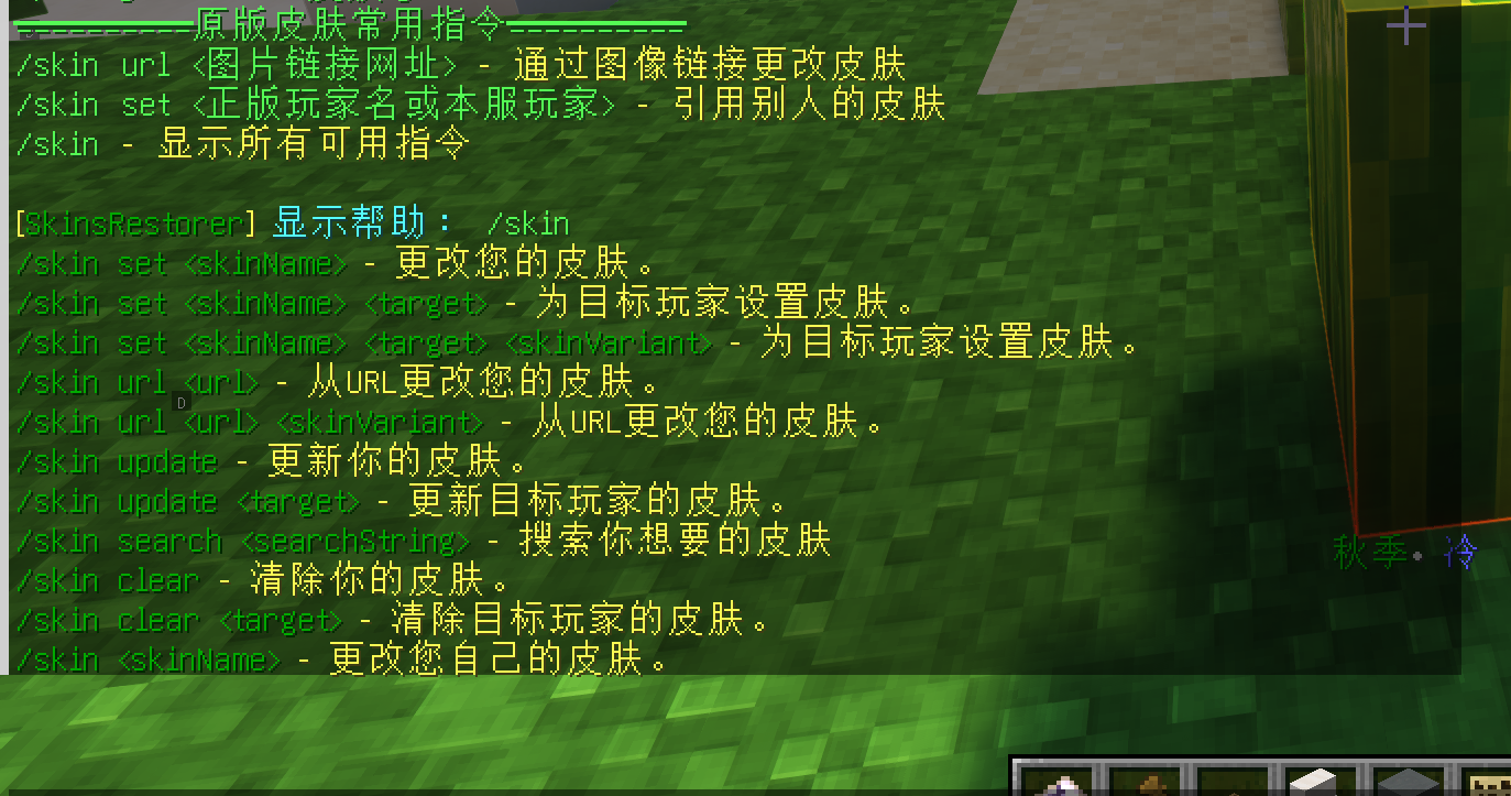 - 点击左边图标,你可以在聊天栏投射出常用的三个指令模板,快速设置传统皮肤。